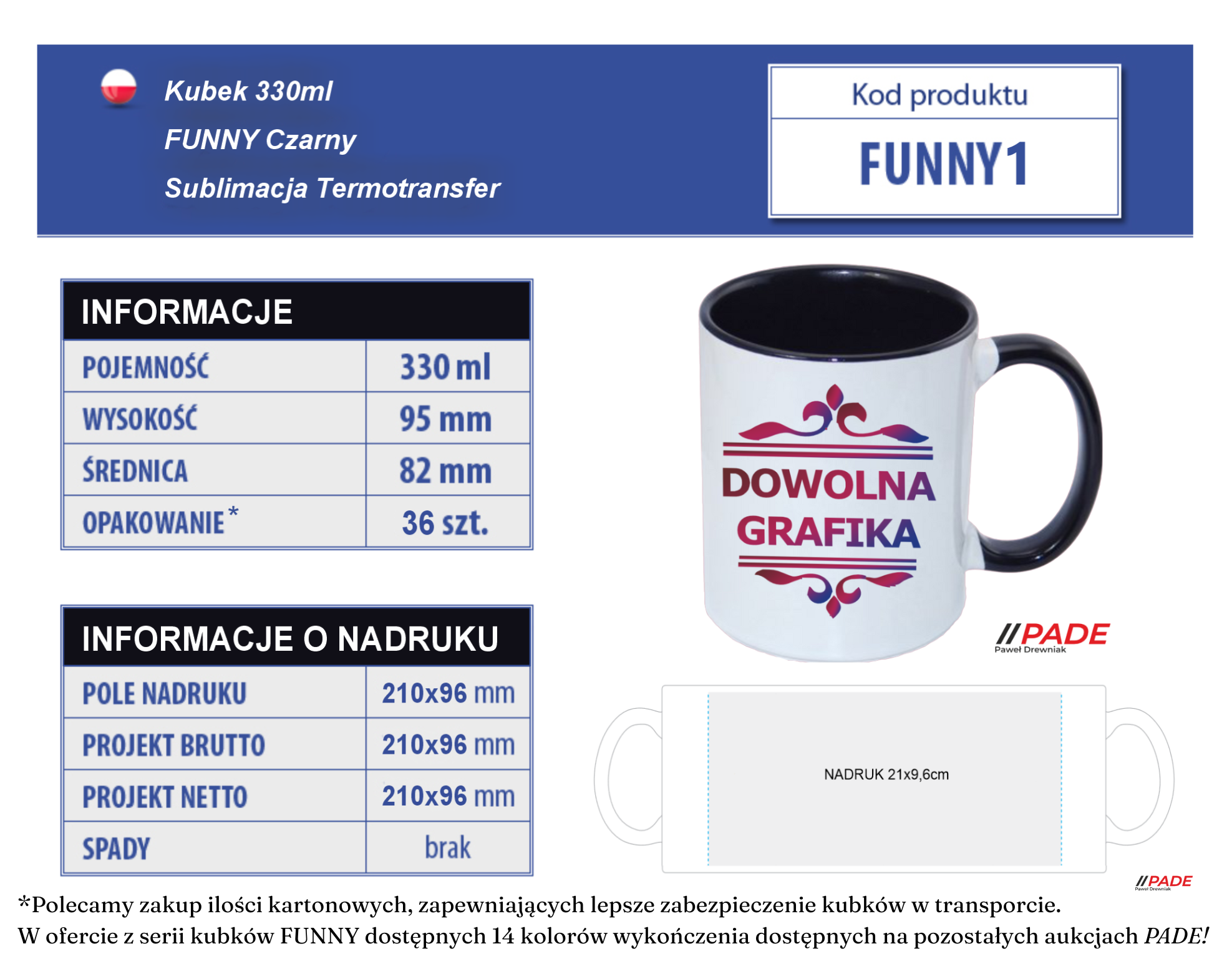 Kubek 330 ml FUNNY Czarny z własnym nadrukiem!