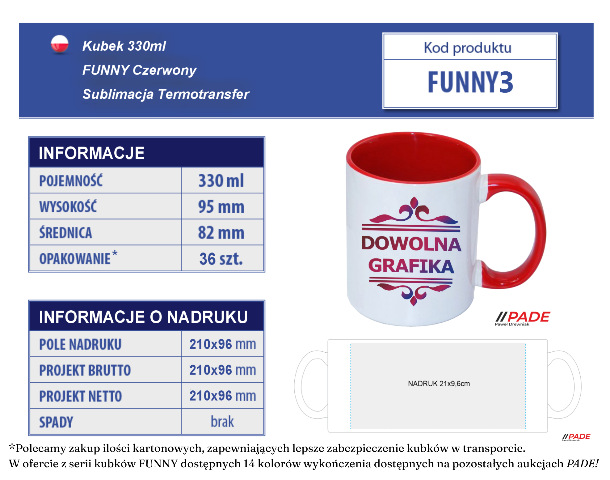Kubek 330 ml FUNNY Czerwony i własnym nadrukiem!