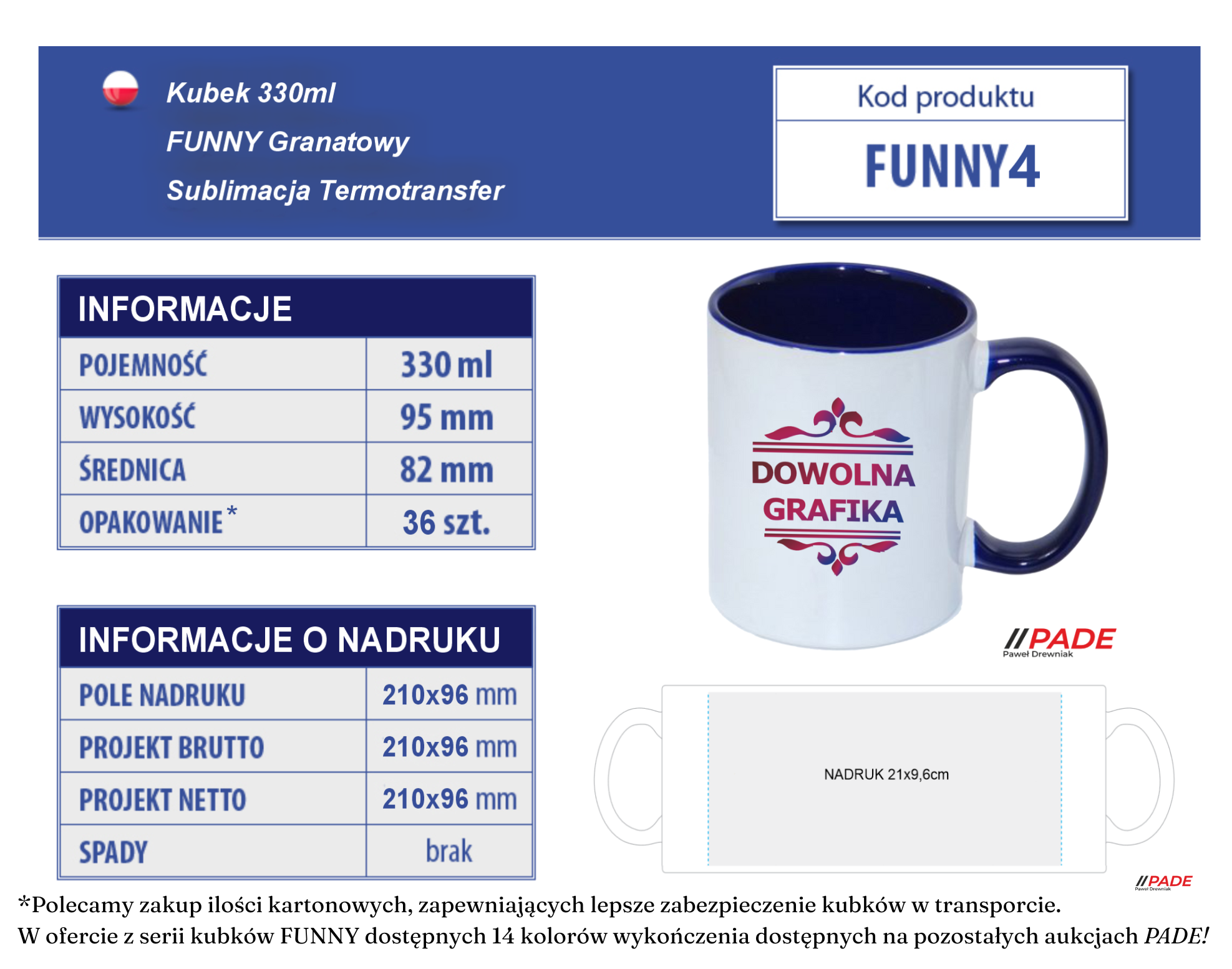 Kubek 330 ml FUNNY Granatowy i własnym nadrukiem!