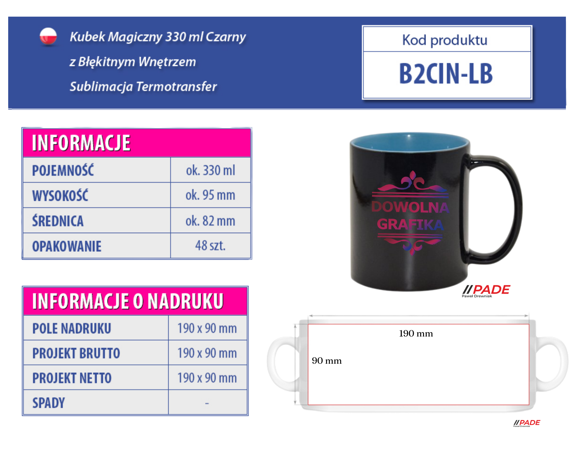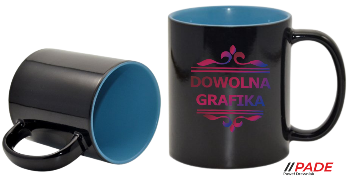 Kubek 330 ml magiczny czarny z błękitnym wnętrzem z własnym nadrukiem!