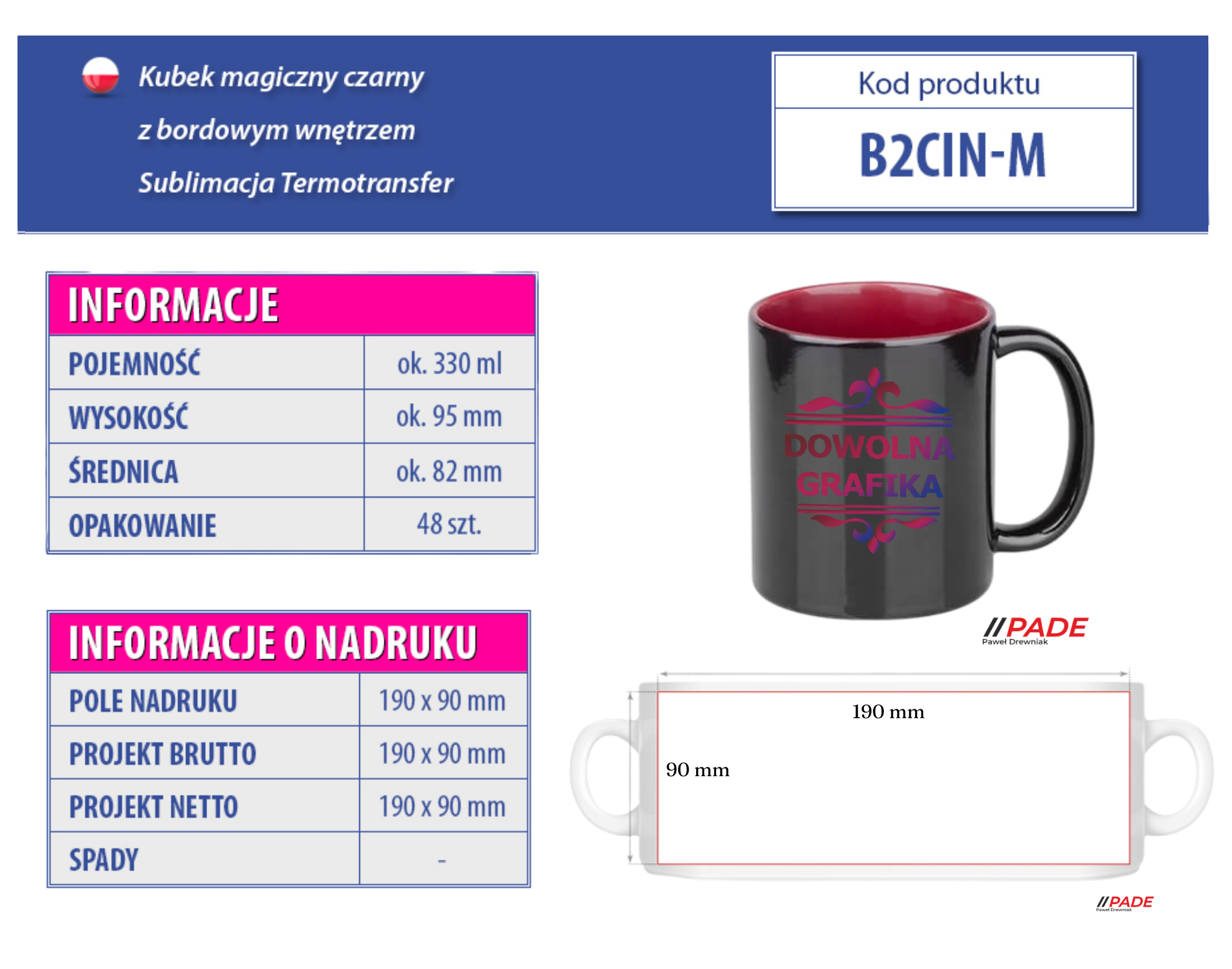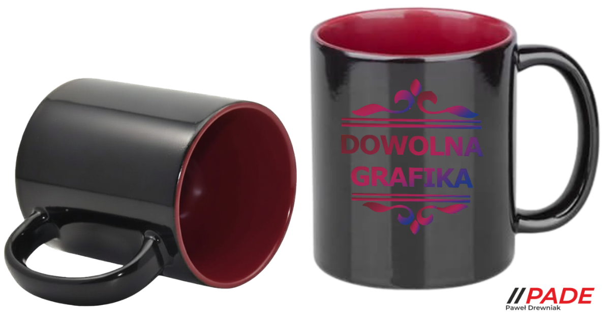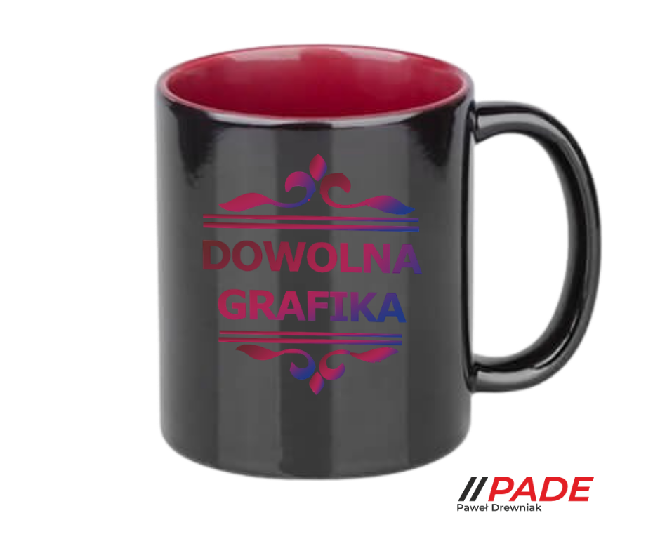Kubek 330 ml magiczny czarny z bordowym wnętrzem z własnym nadrukiem!