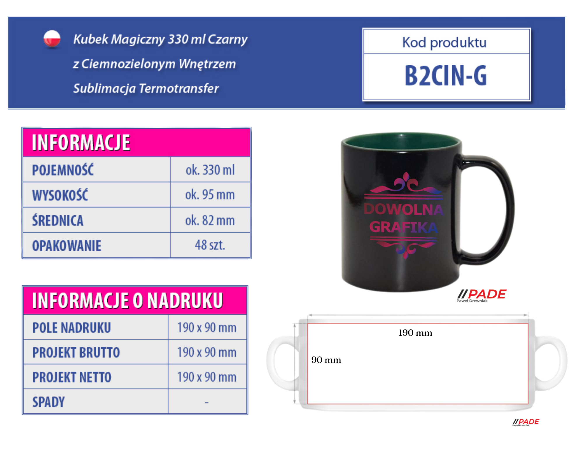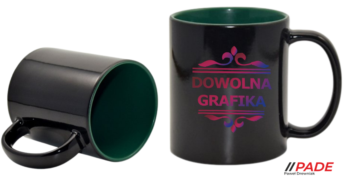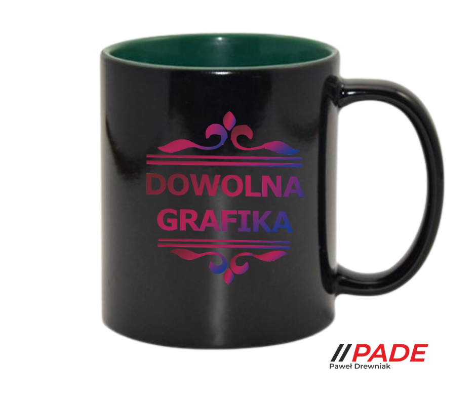 Kubek 330 ml magiczny czarny z ciemnozielonym wnętrzem z własnym nadrukiem!