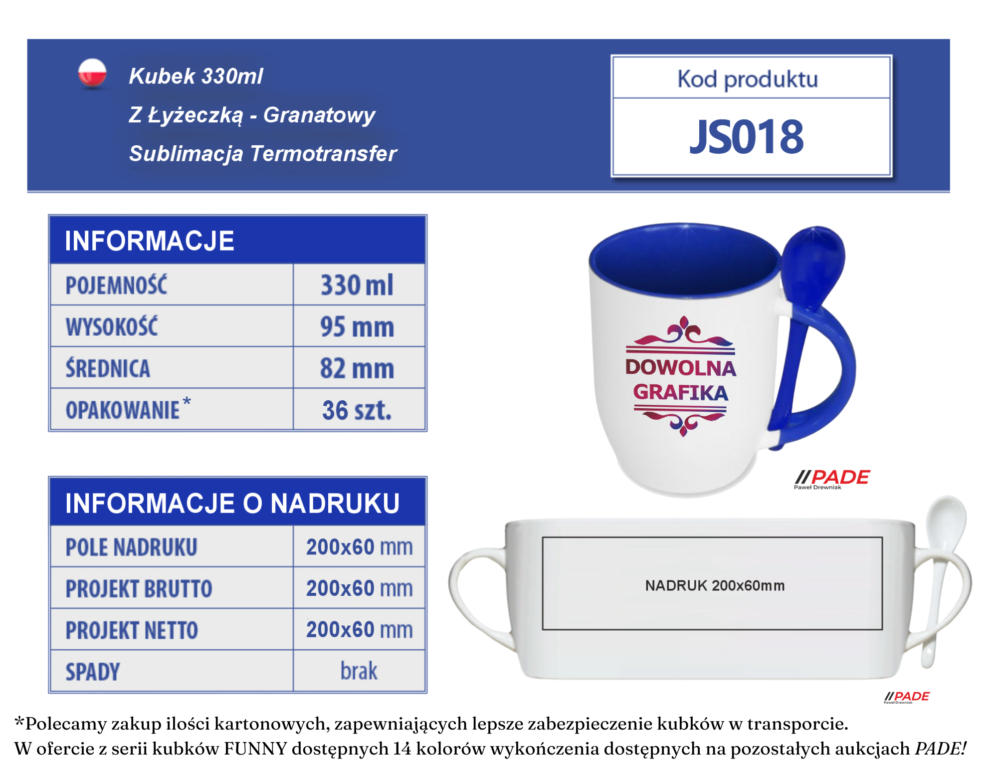 Kubek 330 ml Granatowy z Granatową Łyżeczką i Własnym Nadrukiem!
