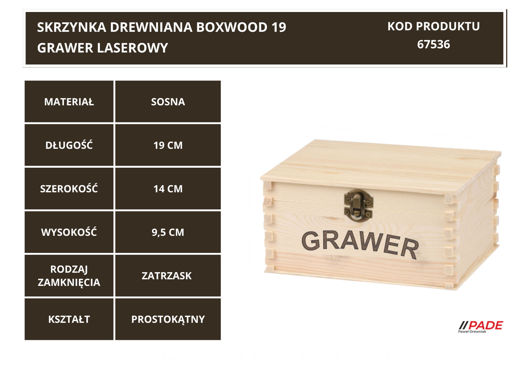 Oferujemy możliwość dodania trwałego graweru laserowego w cenie pudełka.