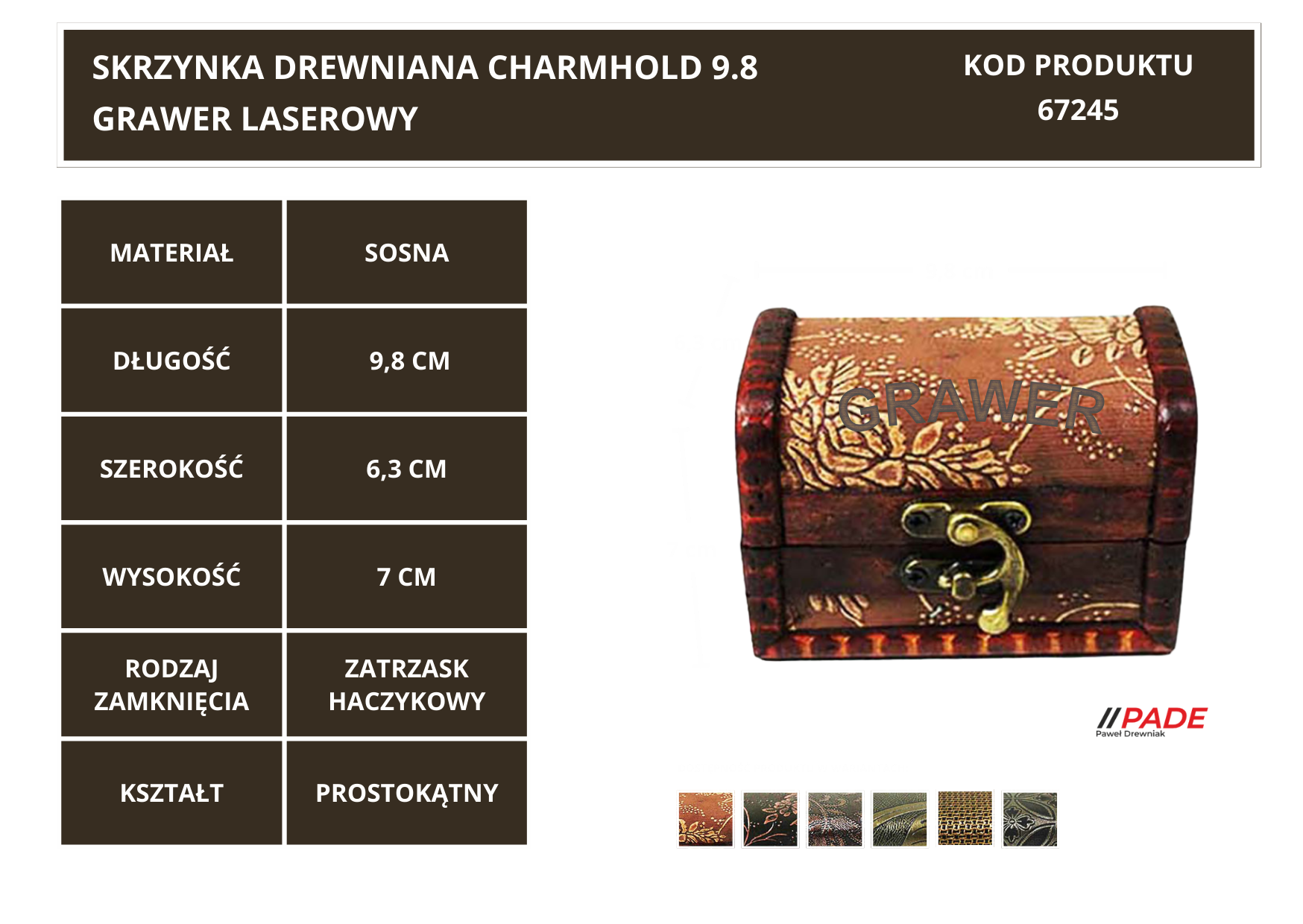 SKRZYNKA DREWNIANA CHARMHOLD 9,8 CM Z WŁASNYM LASEROWYM GRAWEREM !