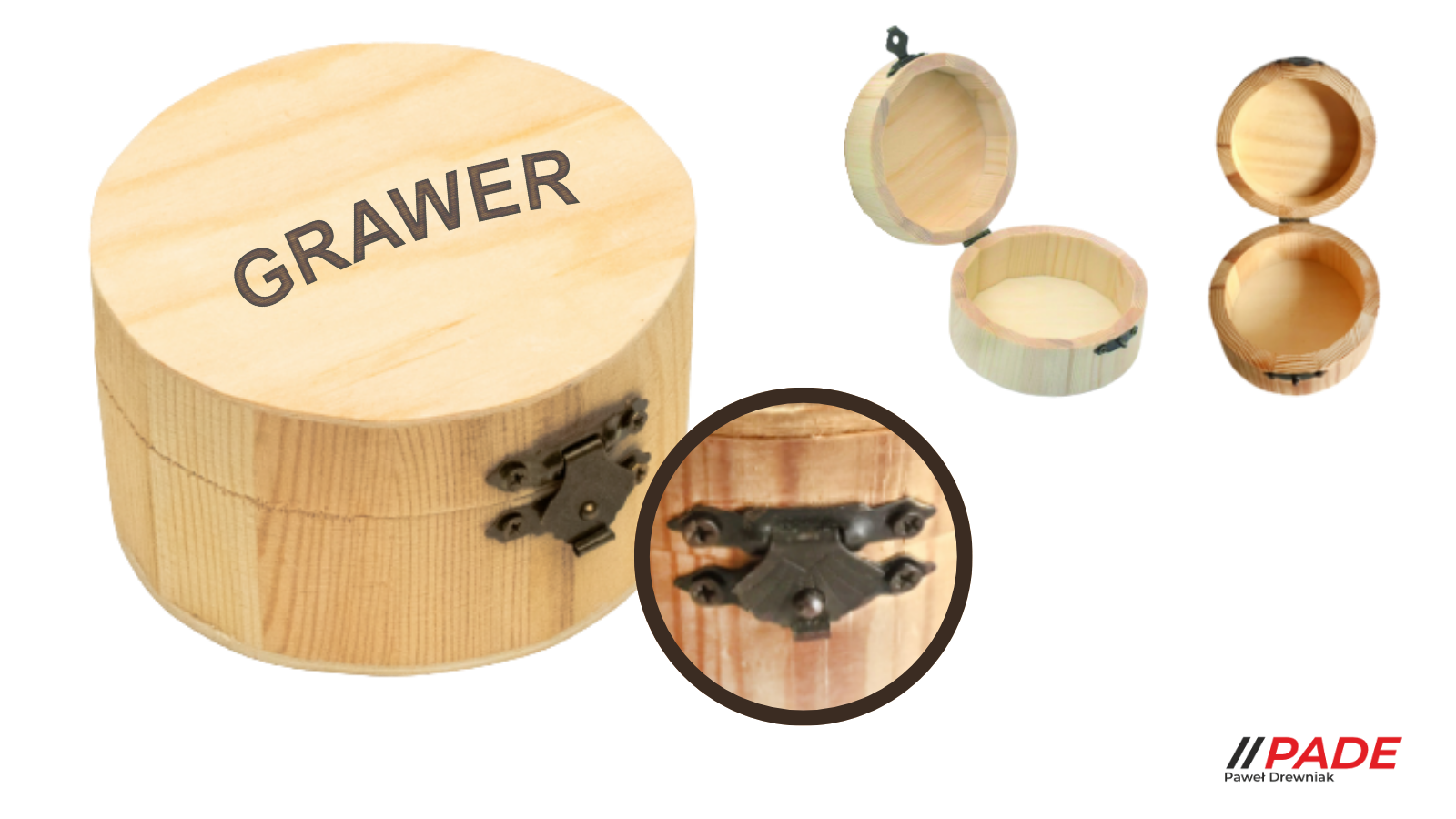 SKRZYNKA DREWNIANA CIRCLE PINE 9 CM Z WŁASNYM LASEROWYM GRAWEREM !