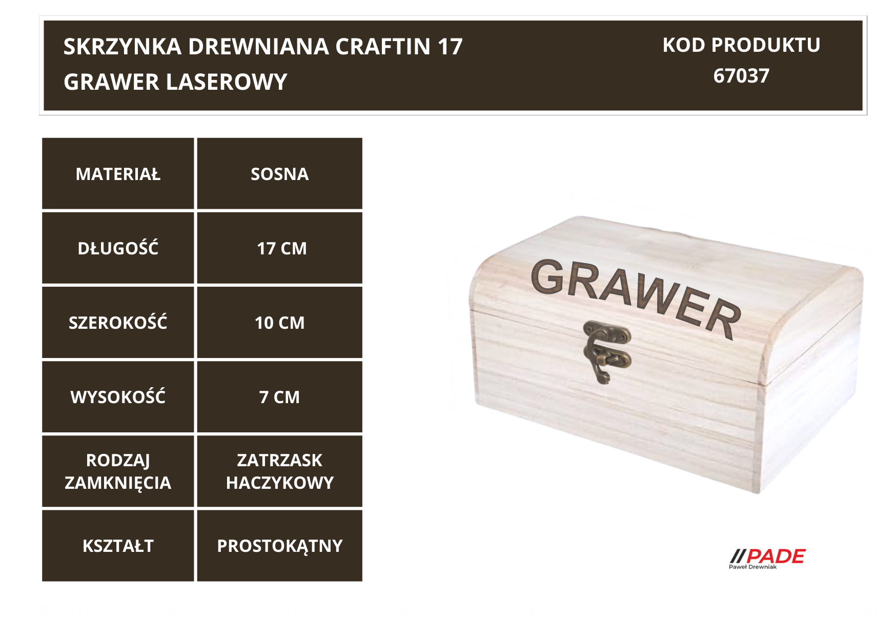 SKRZYNKA DREWNIANA CRAFTIN 17 CM Z WŁASNYM LASEROWYM GRAWEREM !