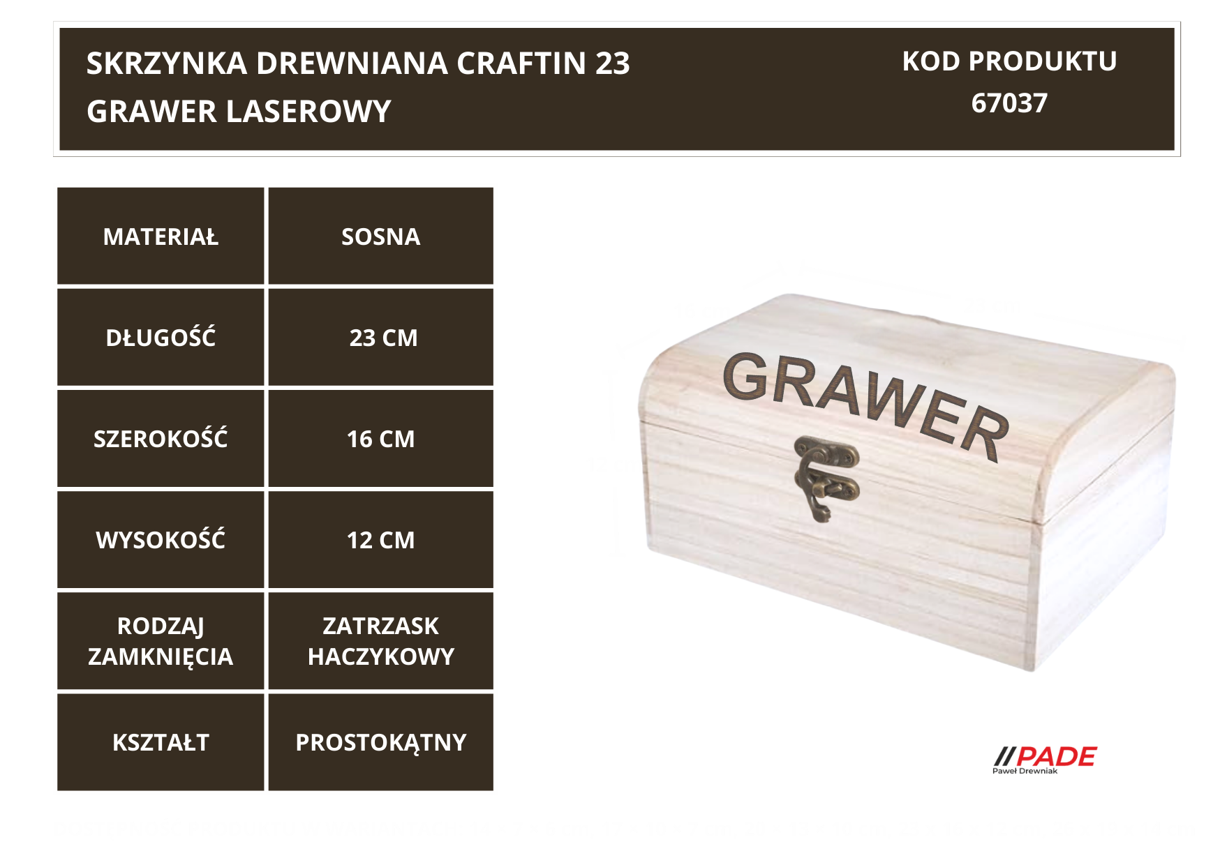SKRZYNKA DREWNIANA CRAFTIN 23 CM Z WŁASNYM LASEROWYM GRAWEREM !