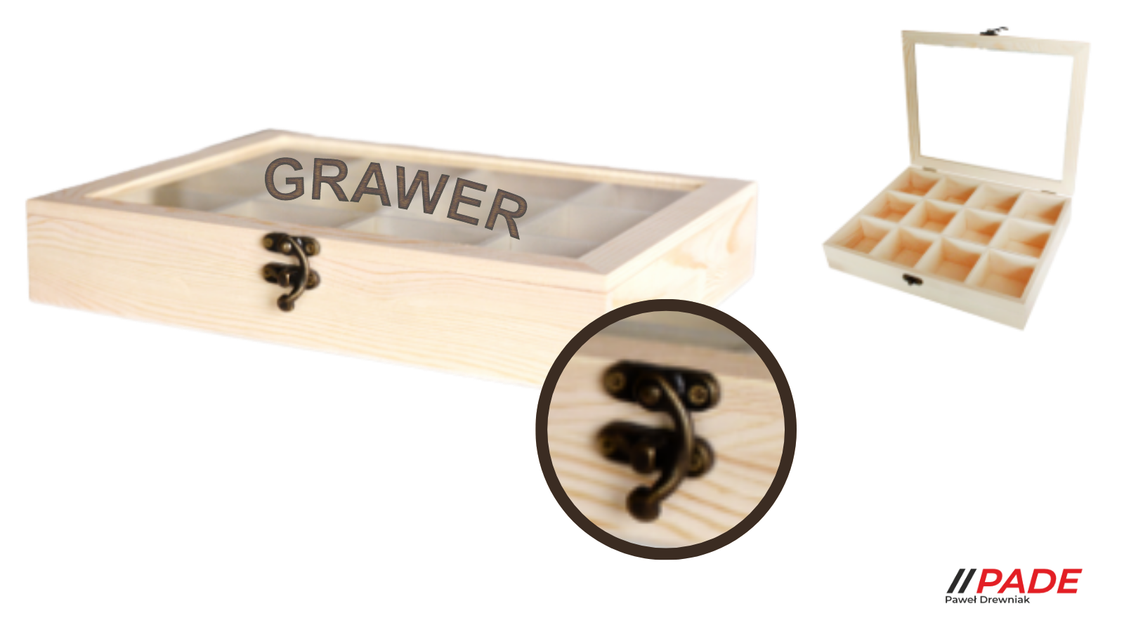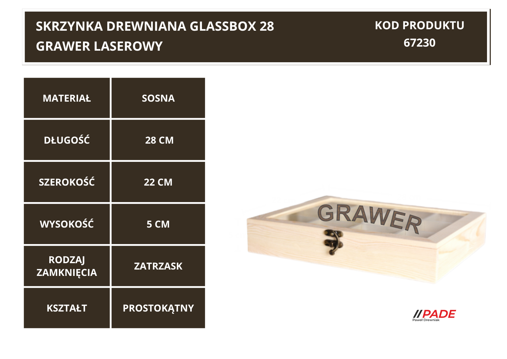 SKRZYNKA DREWNIANA GLASSBOX 28 CM Z WŁASNYM LASEROWYM GRAWEREM !