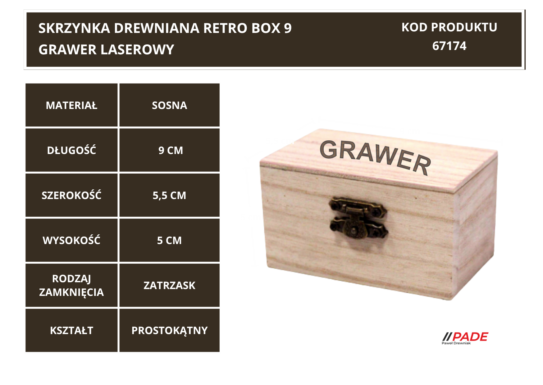 SKRZYNKA DREWNIANA RETRO BOX 9 CM Z WŁASNYM LASEROWYM GRAWEREM !