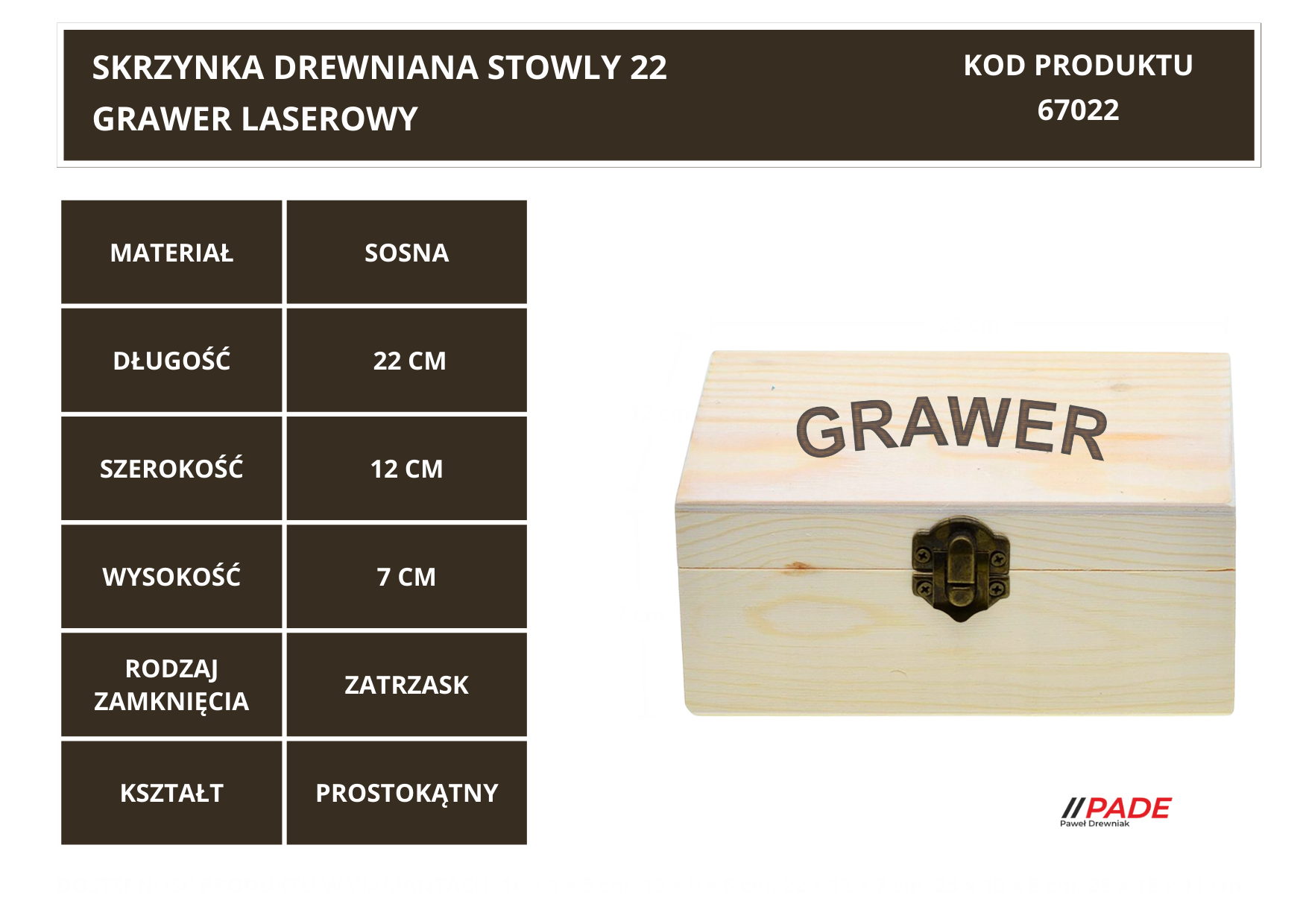SKRZYNKA DREWNIANA STOWLY 22 CM Z WŁASNYM LASEROWYM GRAWEREM !