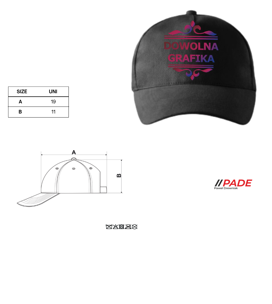 Wizualizacja czapki oraz nadruku wysyłana w wiadomości zwrotnej, w celu zatwierdzenia położenia wzoru ma charakter poglądowy i stanowi jedynie ilustrację rzeczywistego wyglądu produktu  Rzeczywisty rozmiar nadruku jest uzależniony również od wybranego modelu czapki.