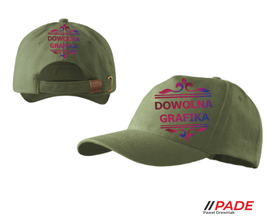 Wizualizacja czapki oraz nadruku wysyłana w wiadomości zwrotnej, w celu zatwierdzenia położenia wzoru ma charakter poglądowy i stanowi jedynie ilustrację rzeczywistego wyglądu produktu  Rzeczywisty rozmiar nadruku jest uzależniony również od wybranego modelu czapki.