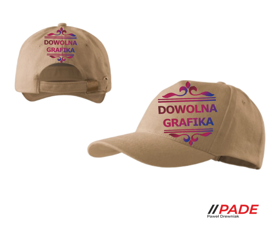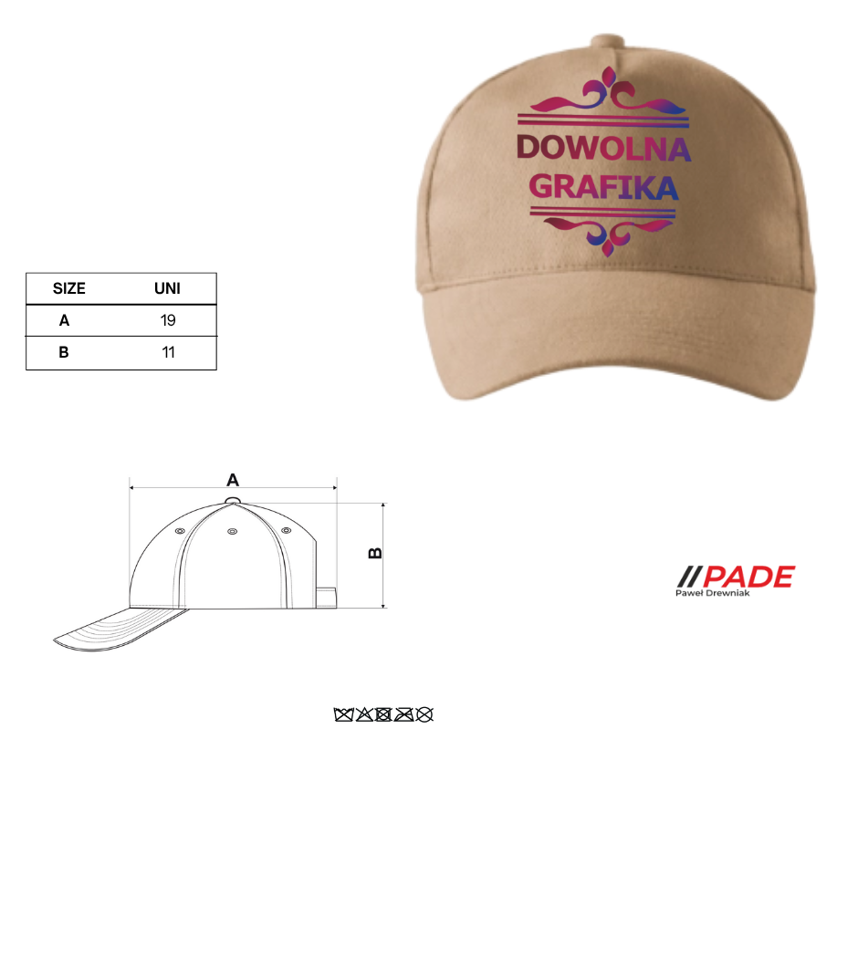 Wizualizacja czapki oraz nadruku wysyłana w wiadomości zwrotnej, w celu zatwierdzenia położenia wzoru ma charakter poglądowy i stanowi jedynie ilustrację rzeczywistego wyglądu produktu  Rzeczywisty rozmiar nadruku jest uzależniony również od wybranego modelu czapki.