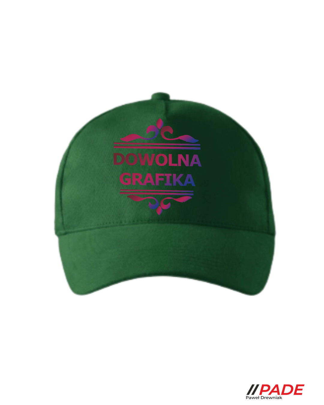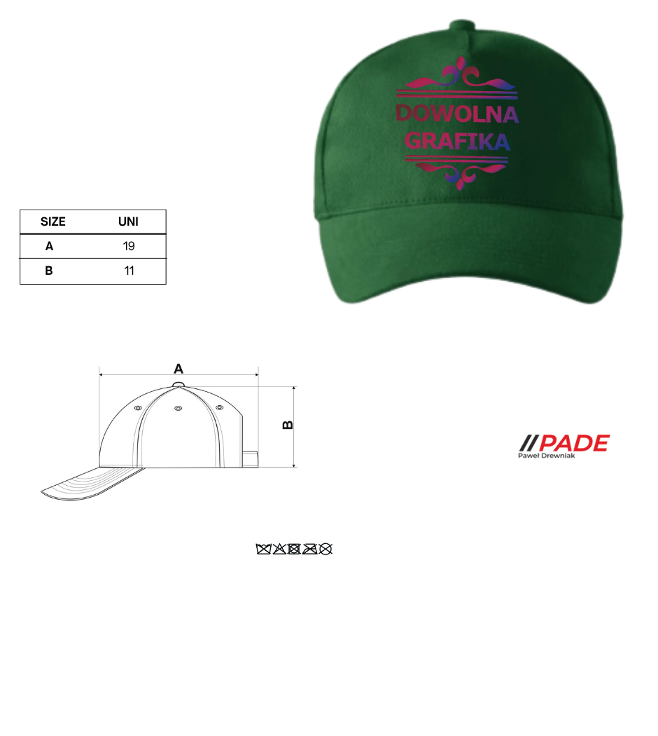 Wizualizacja czapki oraz nadruku wysyłana w wiadomości zwrotnej, w celu zatwierdzenia położenia wzoru ma charakter poglądowy i stanowi jedynie ilustrację rzeczywistego wyglądu produktu Rzeczywisty rozmiar nadruku jest uzależniony również od wybranego modelu czapki.